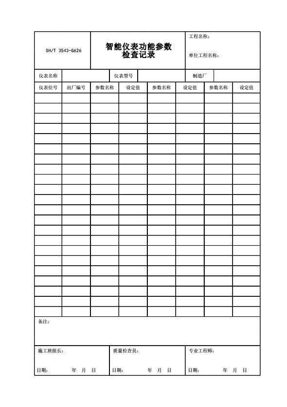 表格名称:SH/T 3543-G626 智能仪表功能参数检查记录