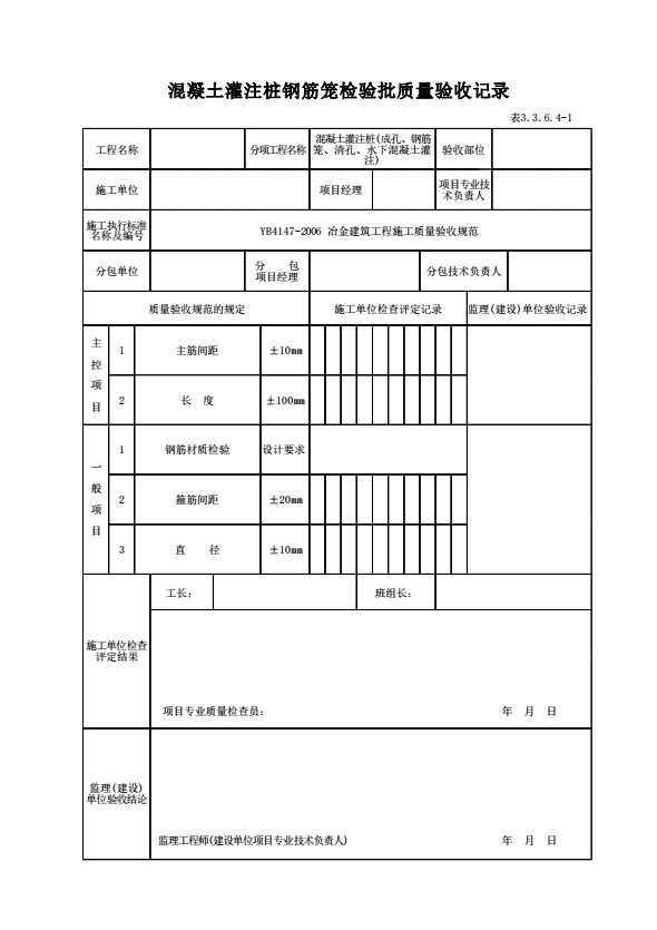 表格名称:表3.3.6.4-1 混凝土灌注桩钢筋笼检验批质量验收记录