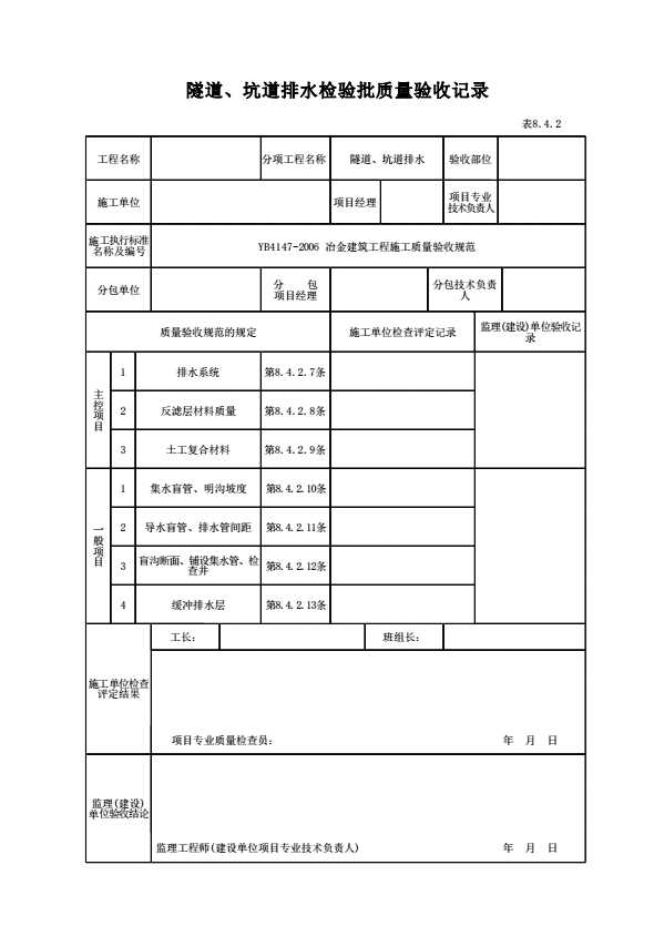 表格名称:表8.4.2 隧道、坑道排水检验批质量验收记录