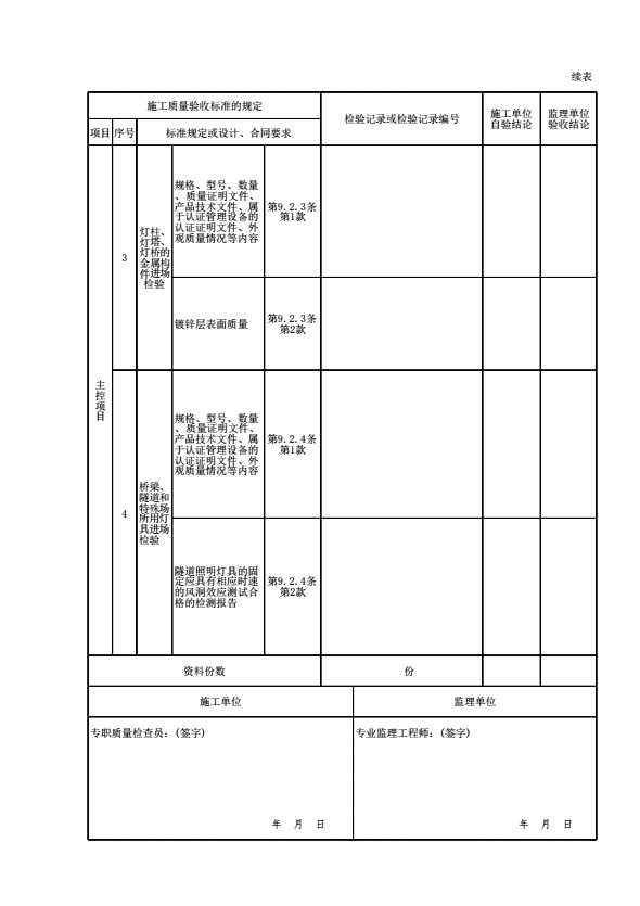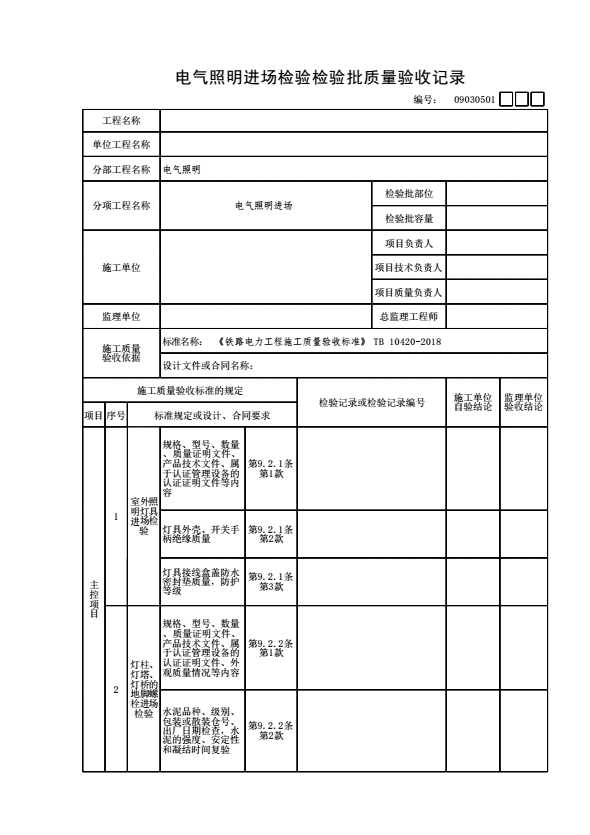 表格名称:09030501 电气照明进场检验检验批质量验收记录