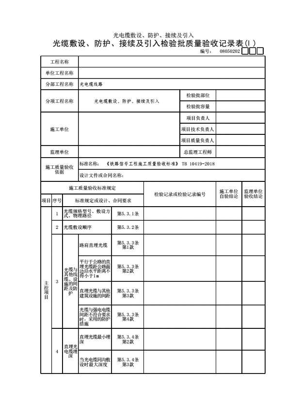 表格名称:08050202 【光电缆敷设、防护、接续及引入】光缆敷设、防护、接续及引入检验批质量验收记录表(Ⅰ)
