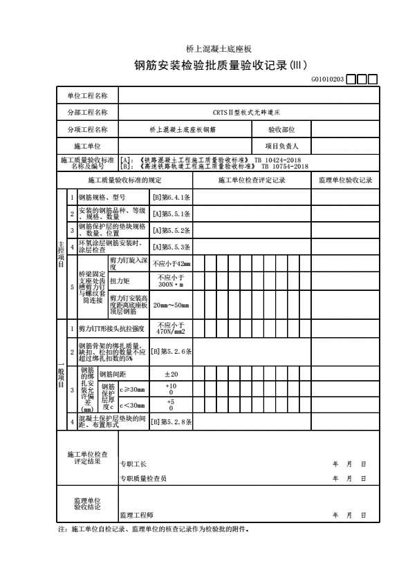 G01010203 【桥上混凝土底座板】钢筋安装检验批质量验收记录(Ⅲ)
