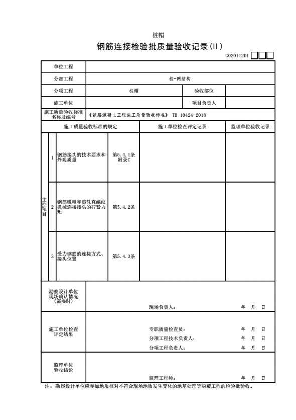 表格名称:G02011201 【桩帽】钢筋连接检验批质量验收记录(Ⅱ)