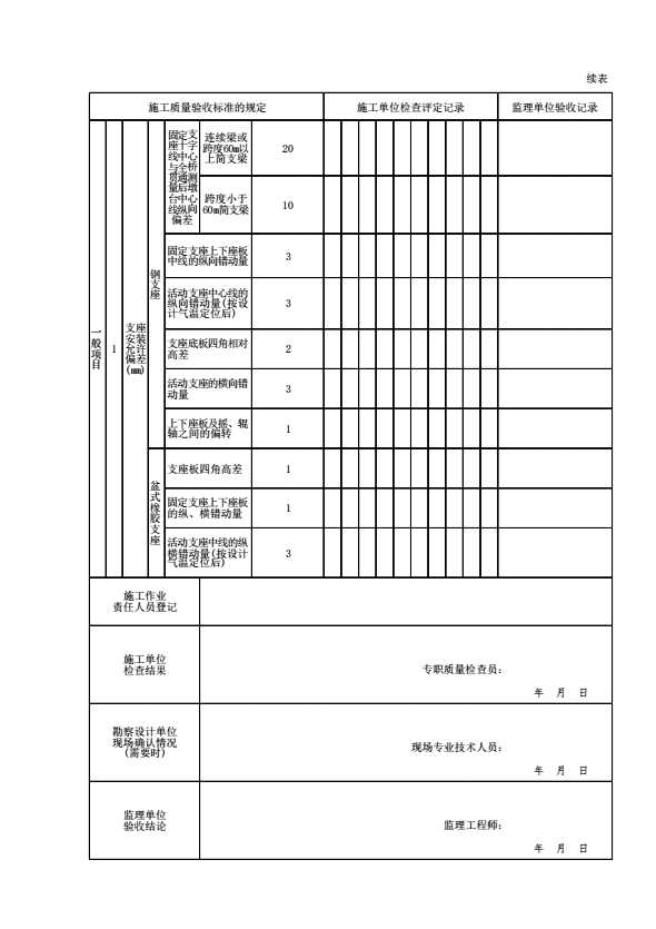 表格名称:G03013204 支座检验批质量验收记录