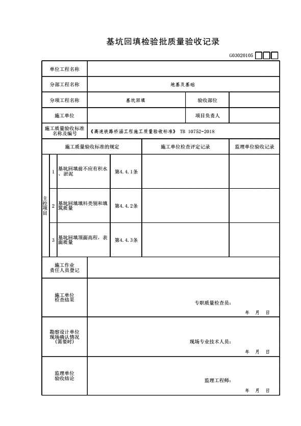 表格名称:G03020105 基坑回填检验批质量验收记录
