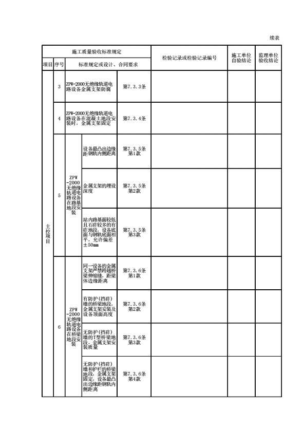 表格名称:G08020402 轨道电路室外设备检验批质量验收记录表