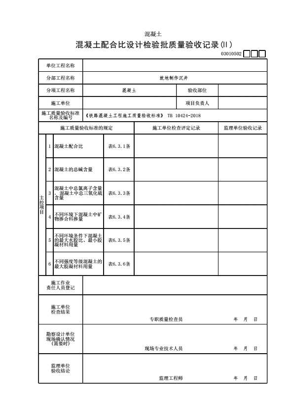 表格名称:03010502 混凝土配合比设计检验批质量验收记录(Ⅱ)