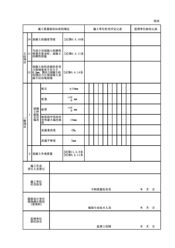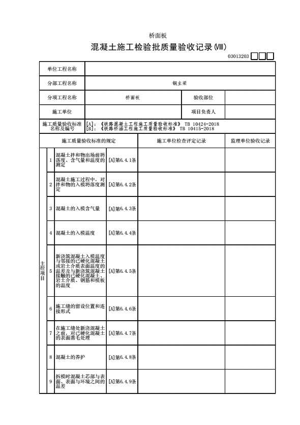表格名称:03013203 混凝土施工检验批质量验收记录(Ⅷ)