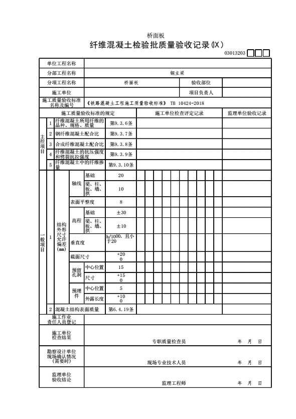 表格名称:03013203 纤维混凝土检验批质量验收记录(Ⅸ)