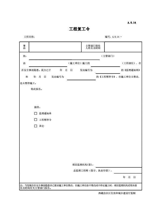 表格名称:A.0.14 监理报告