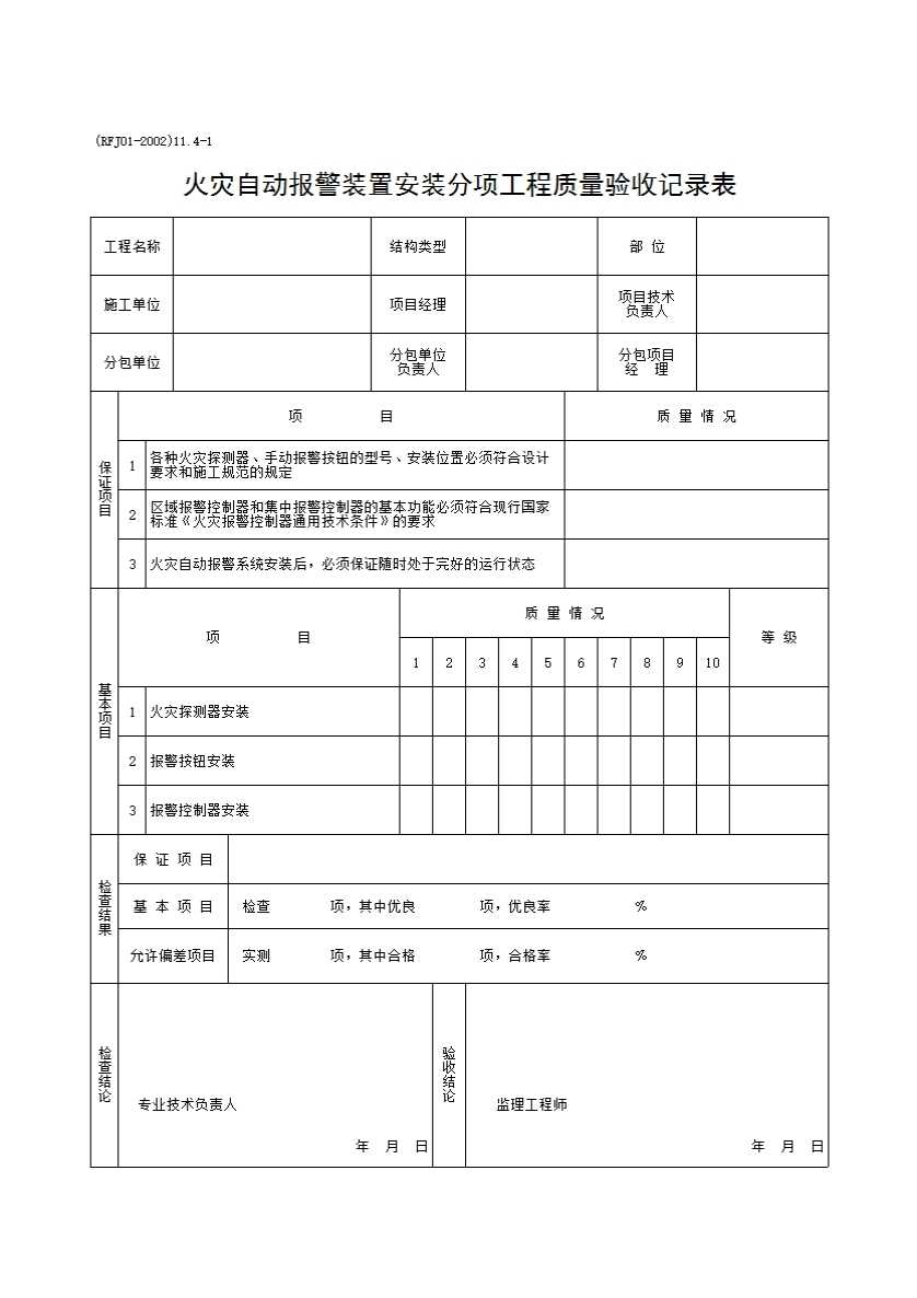 表格名称:火灾自动报警装置安装分项工程质量验收记录表