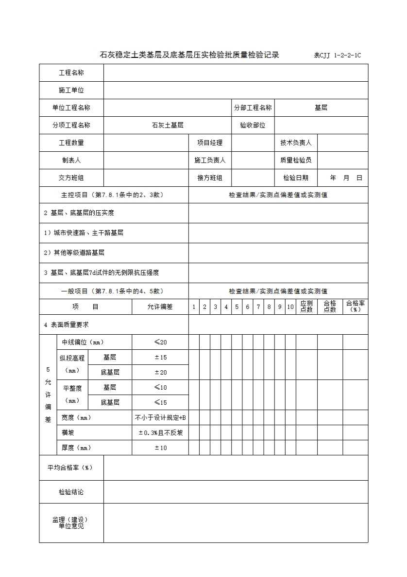表CJJ 1-2-2-1C 石灰稳定土类基层及底基层压实检验批质量检验记录