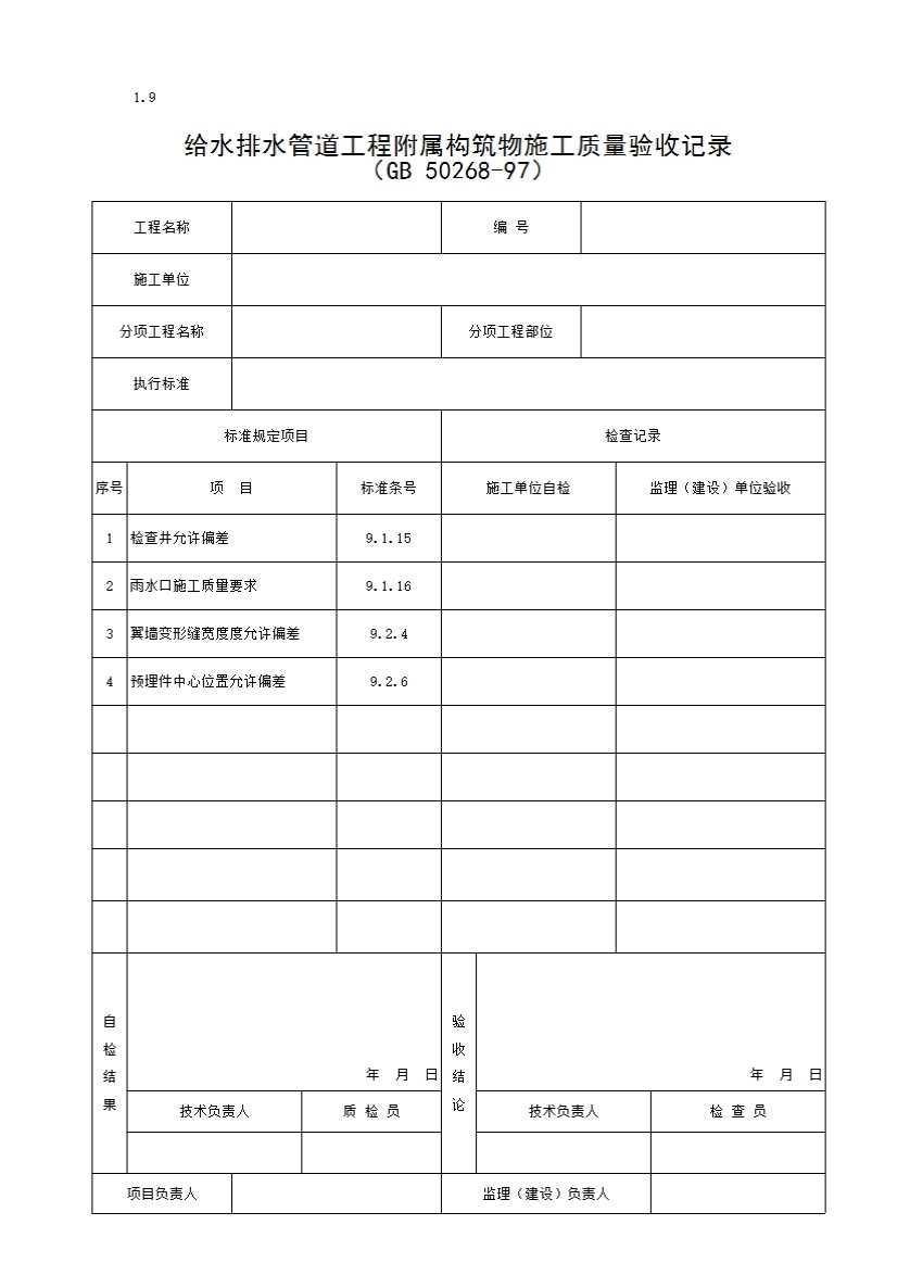 1.9 给水排水管道工程附属构筑物施工质量验收记录