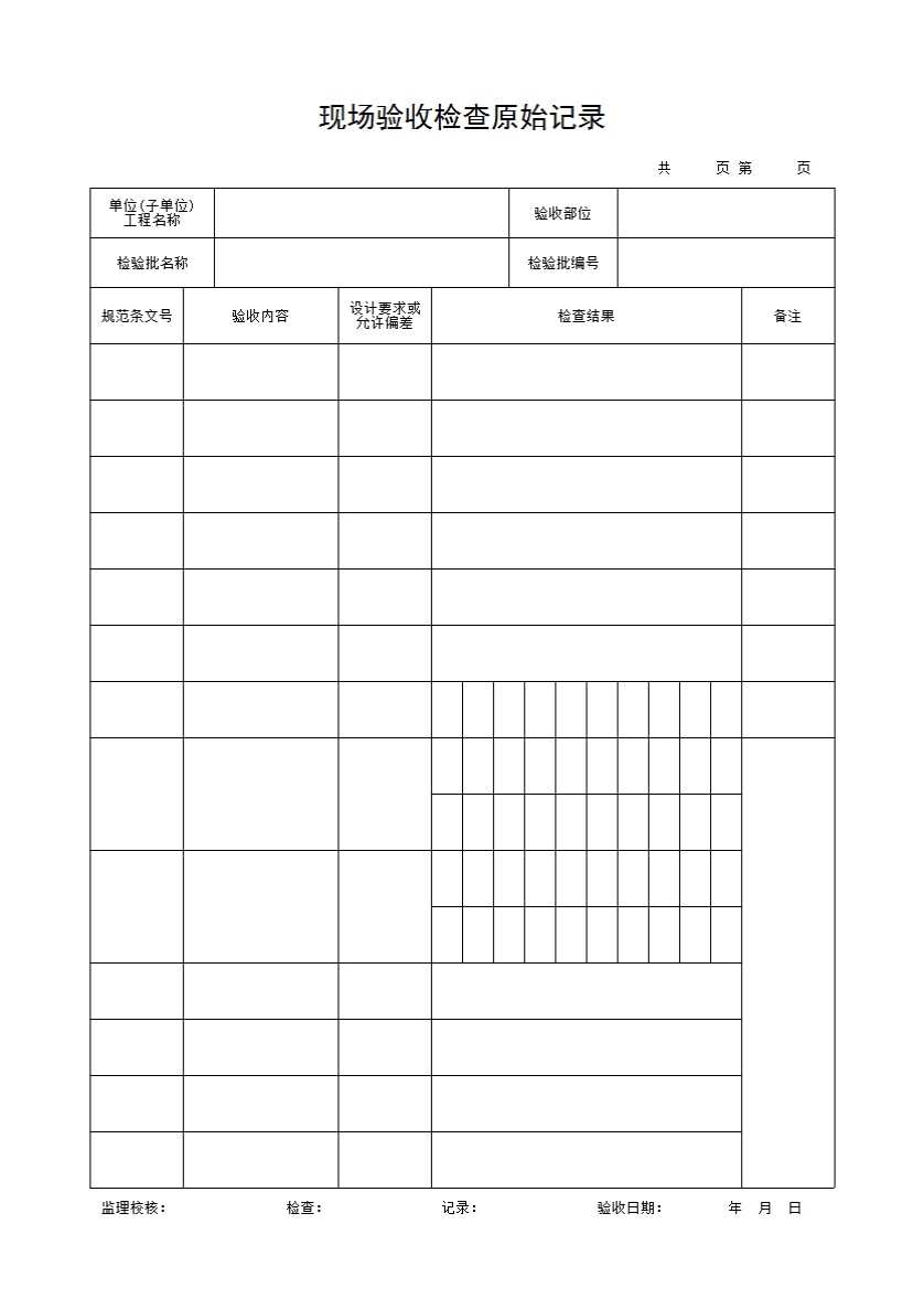 表格名称:现场验收检查原始记录(多个检查部位一行)