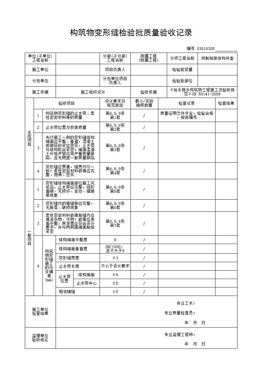 1 构筑物变形缝的止水带、柔性密封材料等的产品质量保证资料应齐全,每批的出厂质量合格证明书及各项性能检验报告应符合本规范第6.1.10条的相关规定和设计要求;