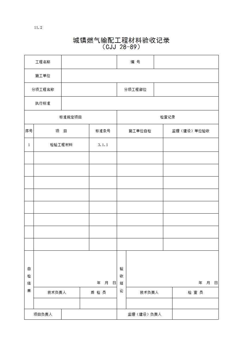 表格名称:11.2 城镇燃气输配工程材料验收记录