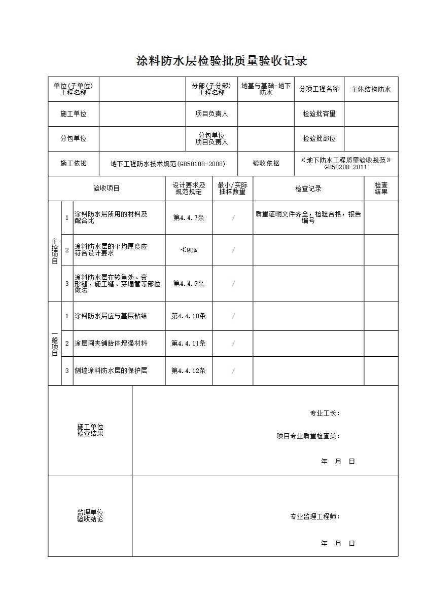 本表适用于受侵蚀性介质作用或受振动作用的地下工程的涂料防水层检验批质量验收。