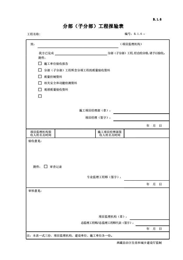 B.1.6 分部(子分部)工程报验表