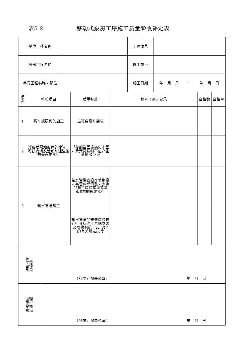 表格名称:5.8 移动式泵房工序施工质量验收评定表