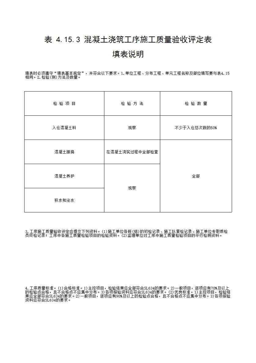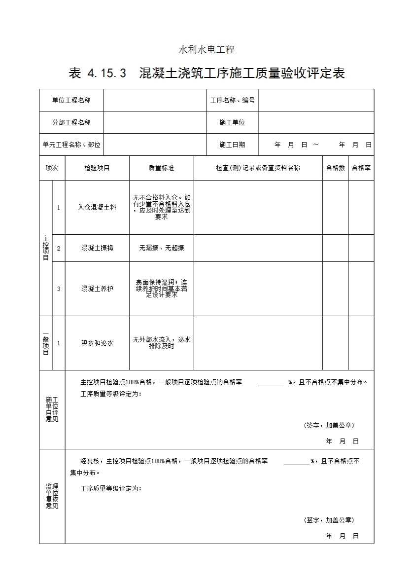 表 4.15.3 混凝土浇筑工序施工质量验收评定表