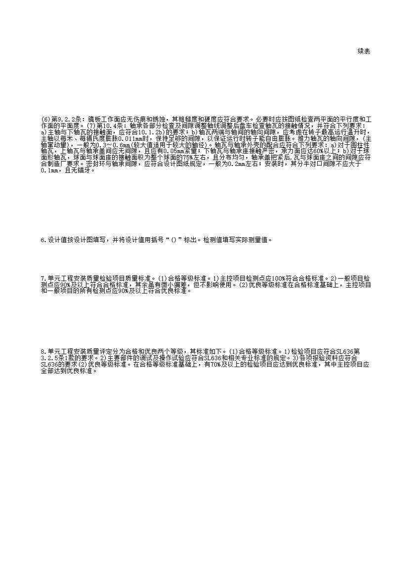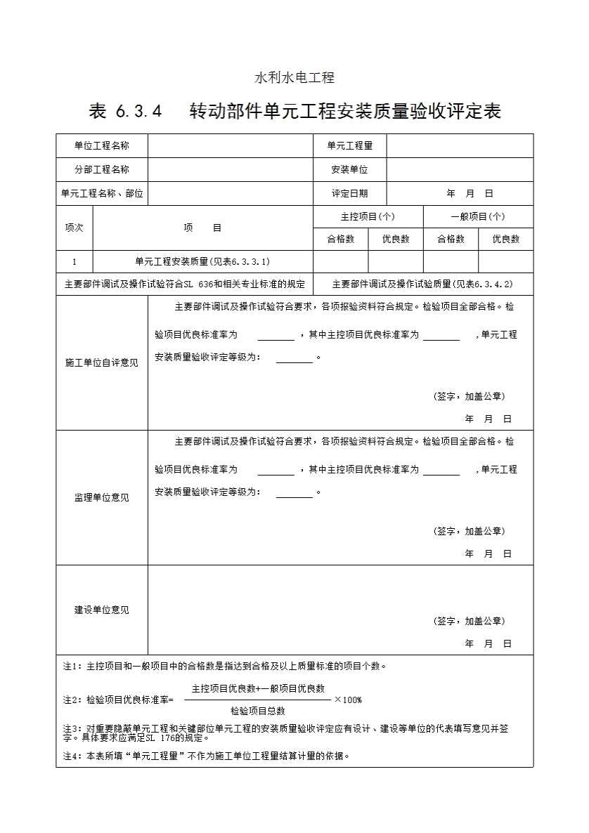 表格名称:表6.3.4 转动部件单元工程安装质量验收评定表