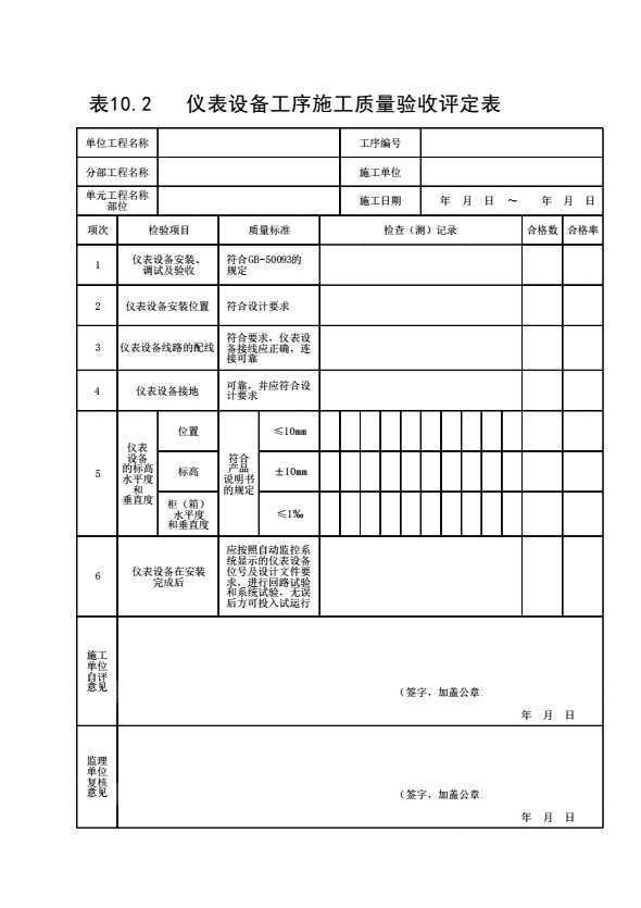 表格名称:10.2 仪表设备工序施工质量验收评定表