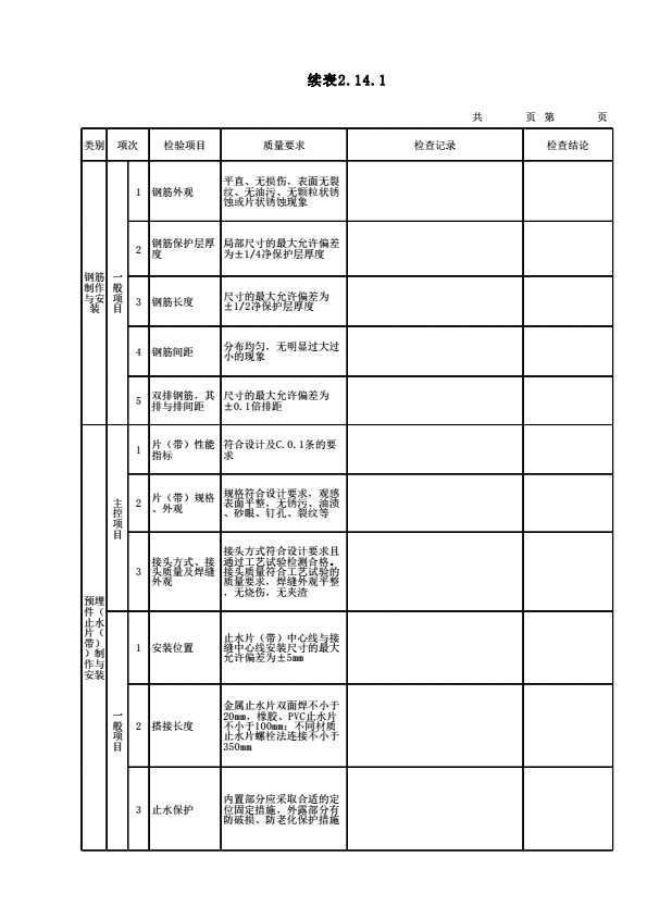 表格名称:表2.14.1 堆石混凝土备仓工序施工质量检验表