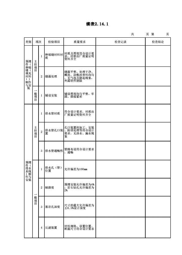 表2.14.1 堆石混凝土备仓工序施工质量检验表