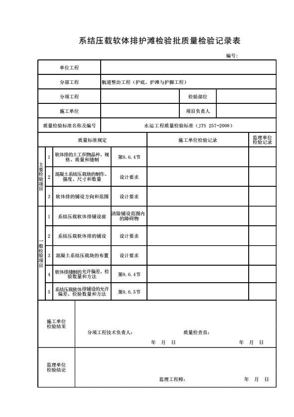 表格名称:系结压载软体排护滩检验批质量检验记录表