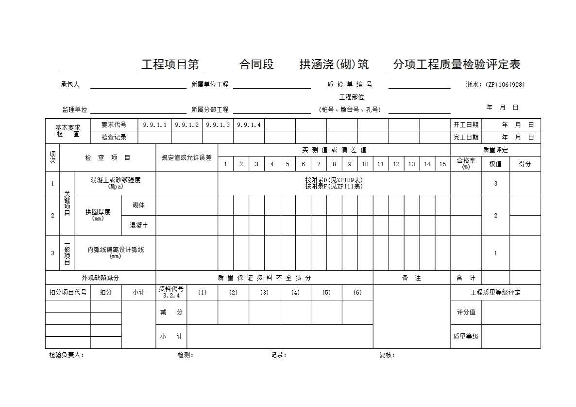 表格名称:114 拱涵浇(砌)筑分项工程质量检验评定表