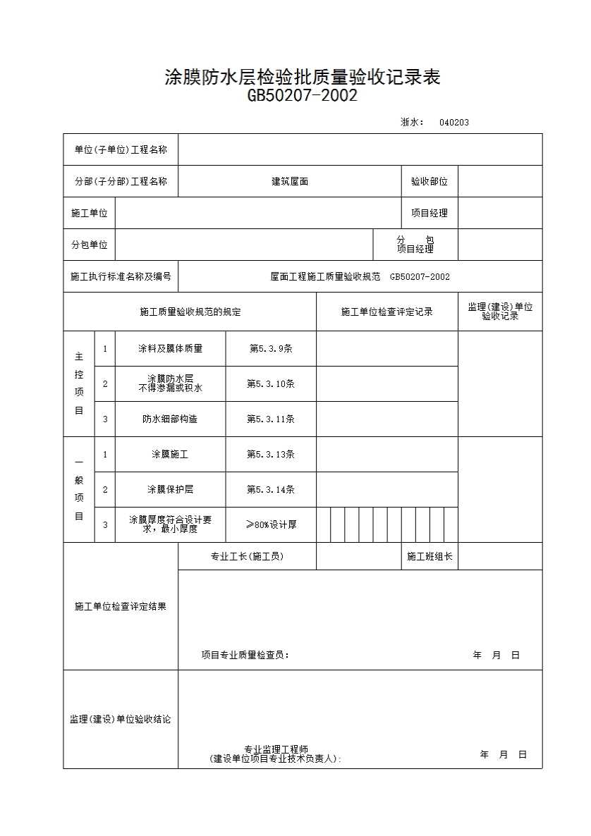 第四节 屋面工程质量验收用表