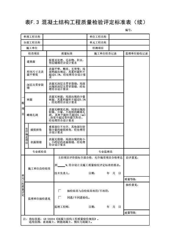 表格名称:表F.3 混凝土结构工程质量检验评定标准表