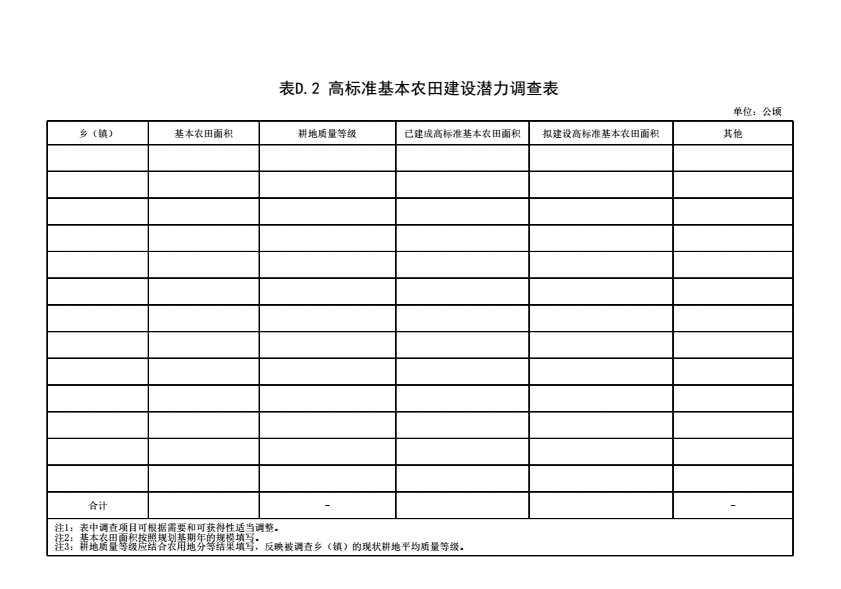 表格名称:表D.2 高标准基本农田建设潜力调查表