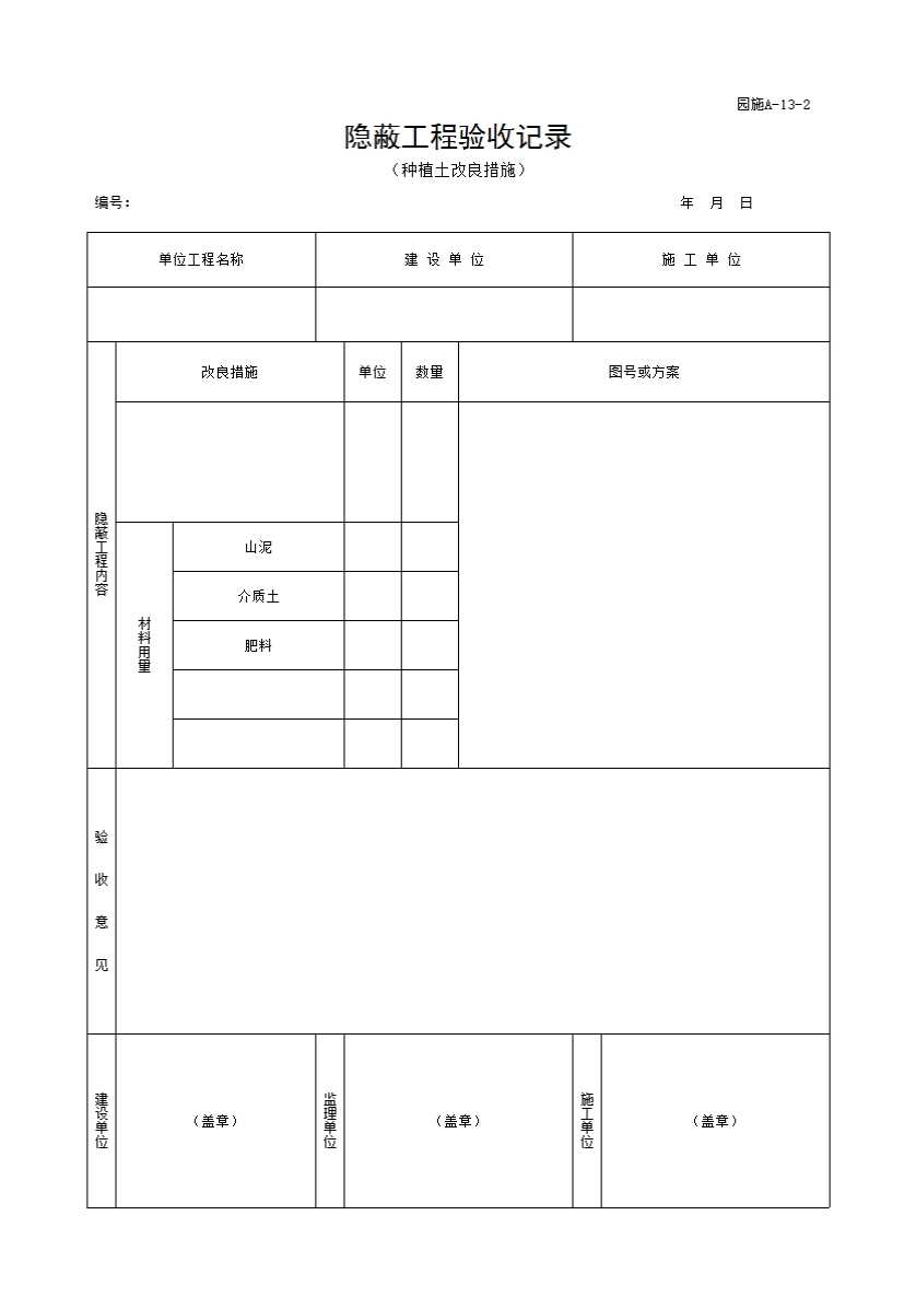 园林绿化工程(绿化)施工技术资料及质量评定表
