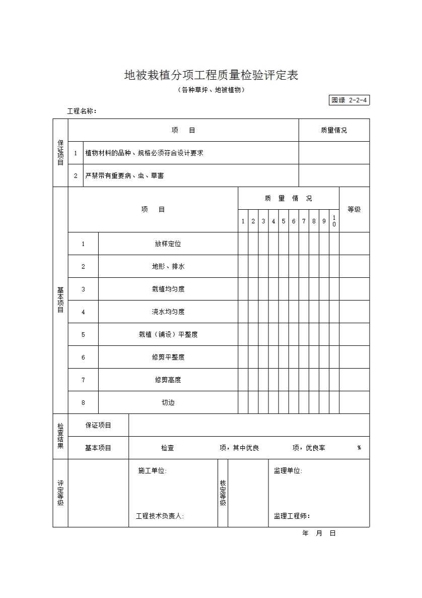 园林绿化工程(绿化)施工技术资料及质量评定表