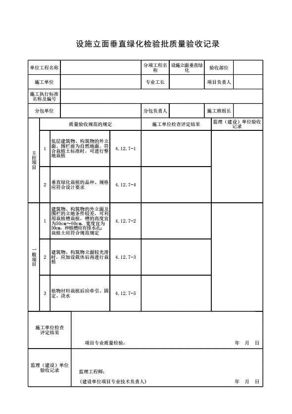 表格名称:设施立面垂直绿化检验批质量验收记录