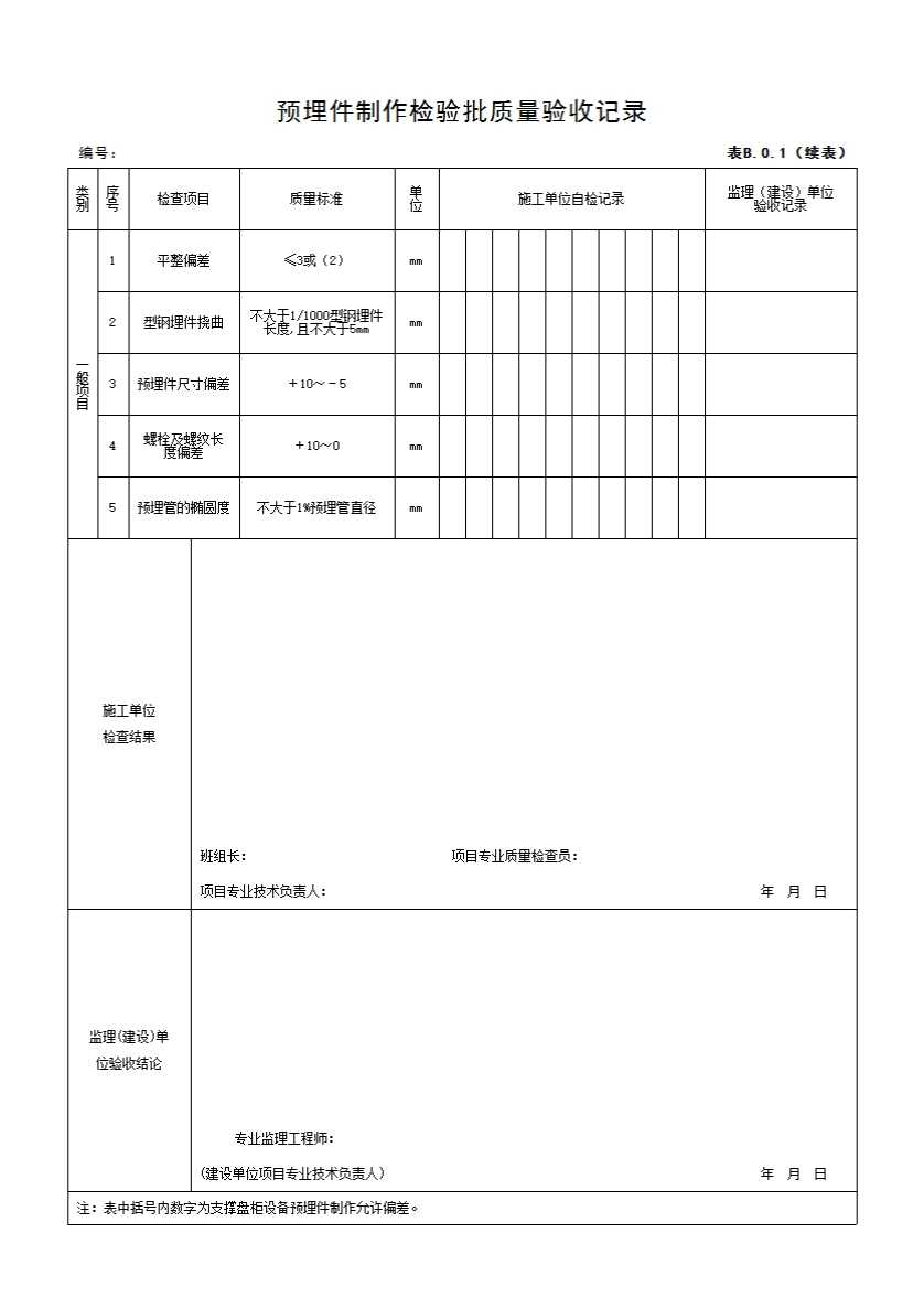 表格名称:B.0.1 预埋件制作检验批质量验收记录