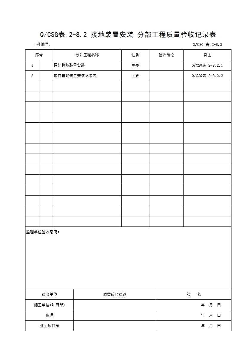 QCSG 表 2-8.2 接地装置安装 分部工程质量验收记录表