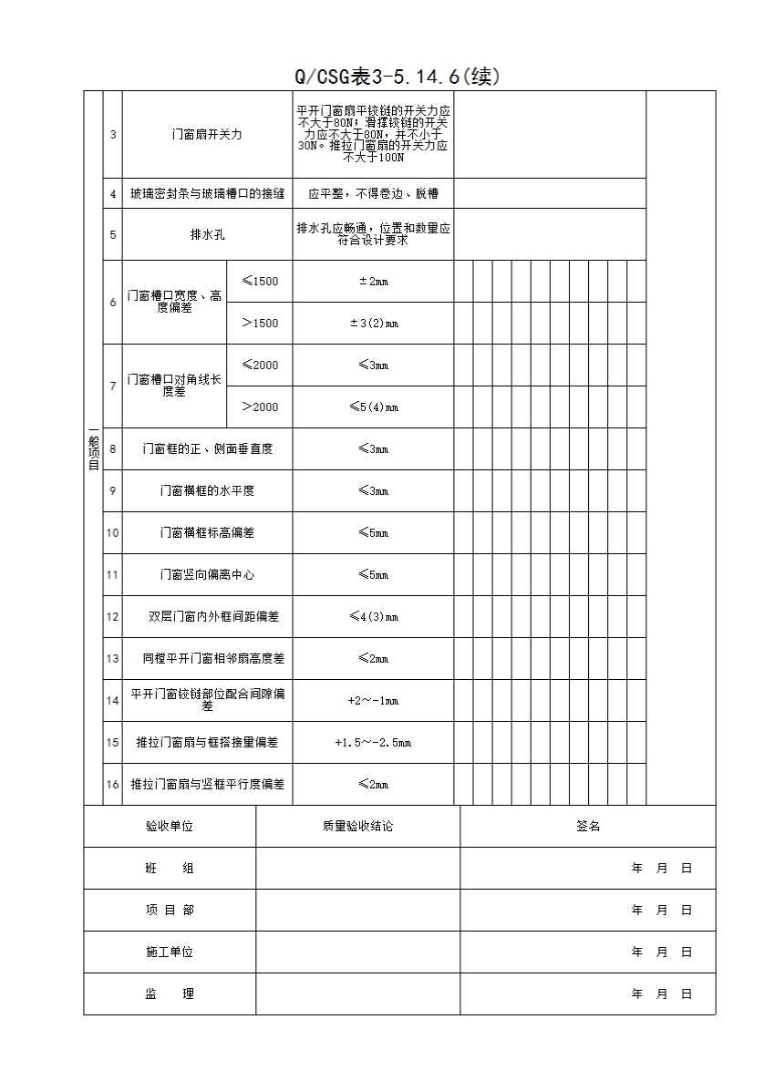 QCSG 表 3-5.14.6 塑料门窗安装工程检验批质量验收记录表