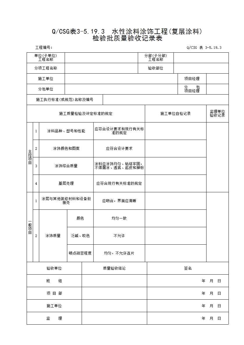 表格名称:QCSG 表 3-5.19.3 水性涂料涂饰工程(复层涂料)检验批质量验收记录表