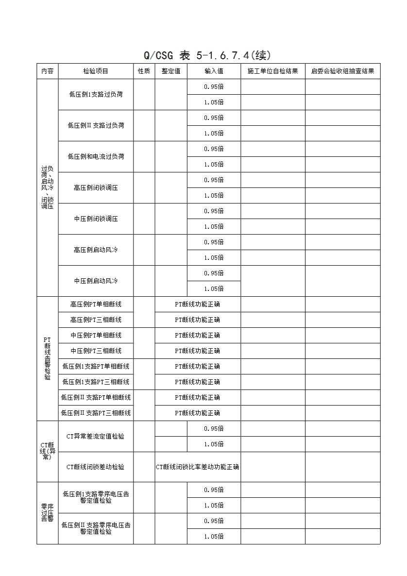 表格名称:QCSG 表 5-1.6.7.4 220kV_____主变间隔 主二保护装置功能检查记录表