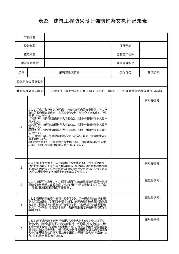 表格名称:表23 建筑工程防火设计强制性条文执行记录表