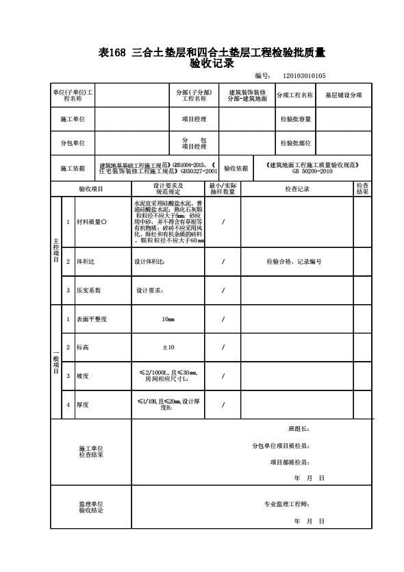 表格名称:120103010105 三合土垫层和四合土垫层工程检验批质量验收记录