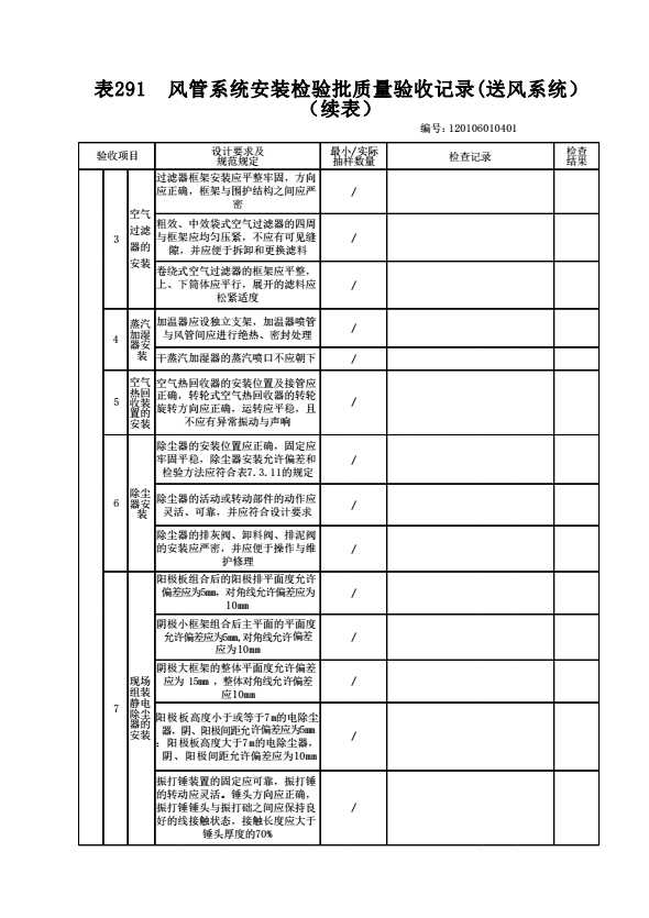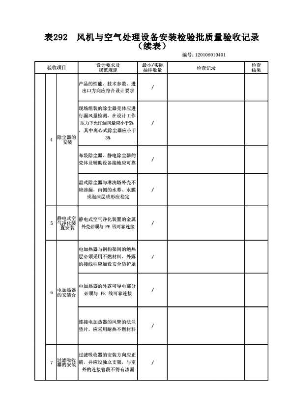 表格名称:120106010401 风机与空气处理设备安装检验批质量验收记录
