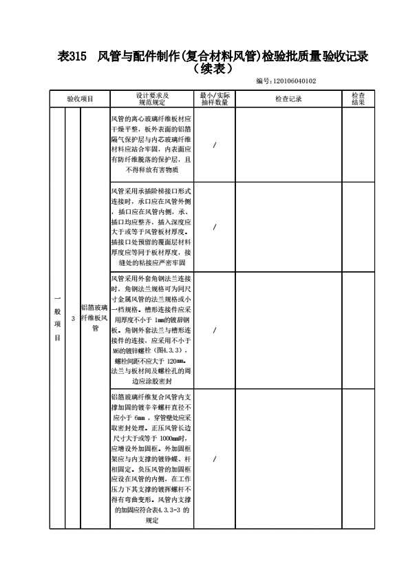 表格名称:120106040102 风管与配件制作(复合材料风管)检验批质量验收记录