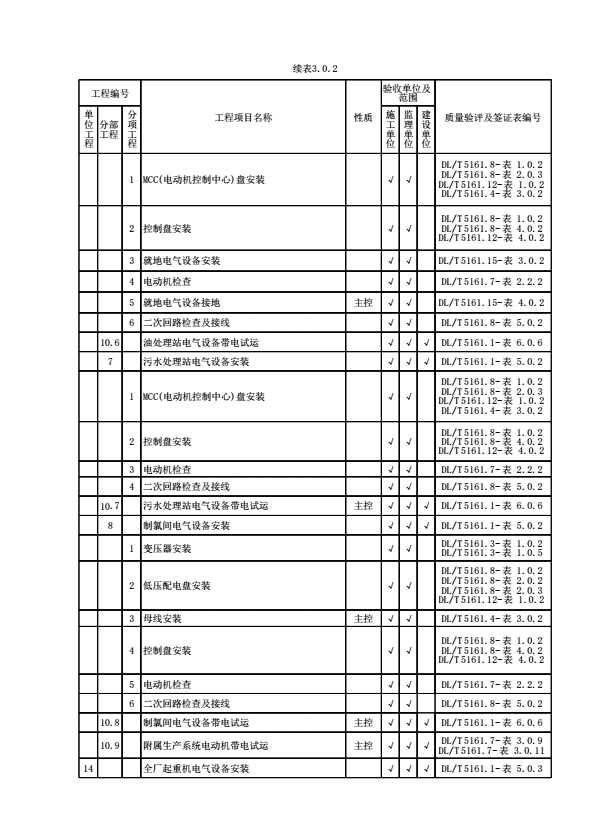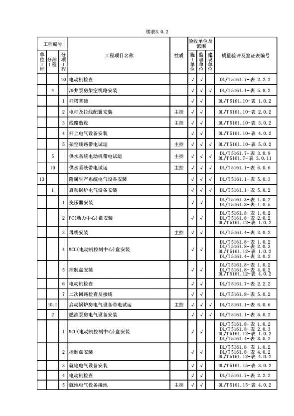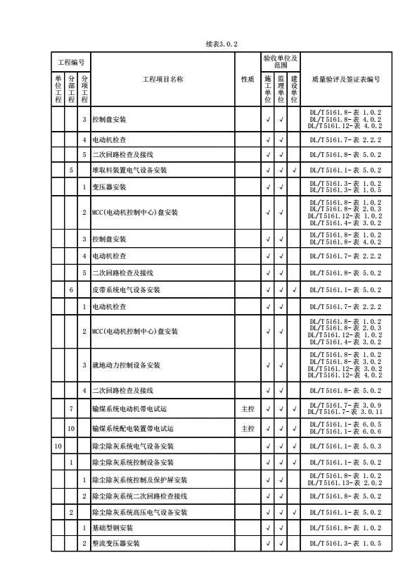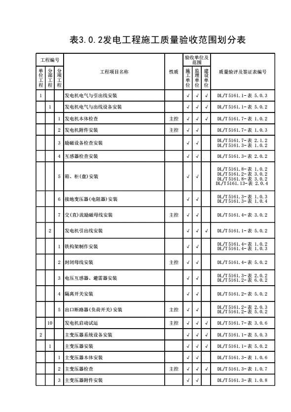 表格名称:表3.0.2 发电工程施工质量验收范围划分表