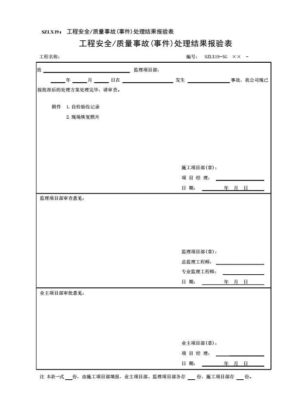 SZLX19:工程安全质量事故(事件)处理结果报验表