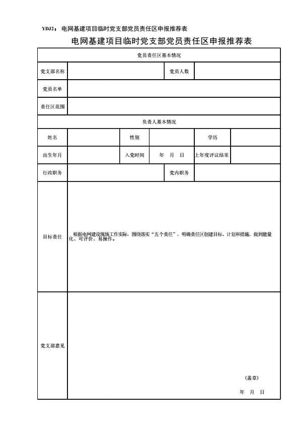 YDJ2:电网基建项目临时党支部党员责任区申报推荐表