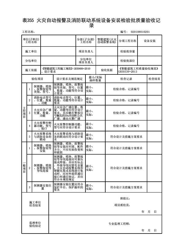 020108010201 火灾自动报警及消防联动系统设备安装检验批质量验收记录