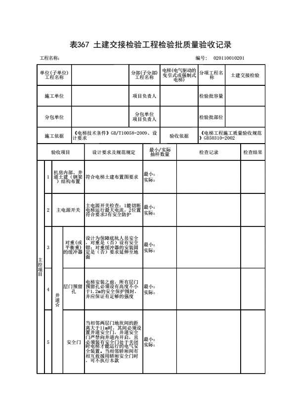 表格名称:020110010201 土建交接检验工程检验批质量验收记录